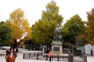 エレベータの設置場所の連絡不足で先生方には階段を登ってしまうこととなりましたが、西郷さんの銅像の後方に東京スカイツリーを望む上野の森でのクラス会開催となりました。